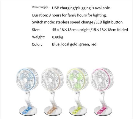 Protable Mini Piccolo Popolare Ventilatore a mano ricaricabile con luce a LED e velocità regolabile
